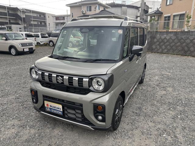 R7 スペーシアギア ハイブリッドXZターボ 入荷。 色はモスグレー♪ 衝突被害軽減ブレーキ 全方位ナビ LED ルーフレール